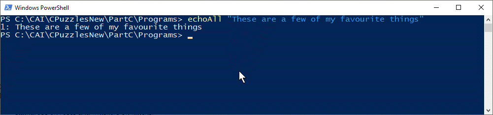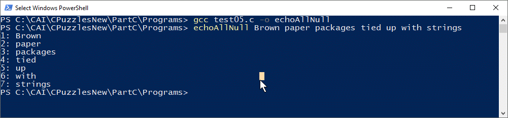 #include <stdio.h> int main(int argc, char *argv[]) { int j ; for ( j=1; argv[j] != NULL; j++ ) printf("%1d: %s\n", j, argv[j] ); return 0; }